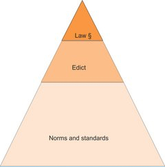 On the basis of norms and guidelines, national guidelines and laws are issued. The laws shall guarantee the observance of the standards and shall make it controllable and make offences punishable. |